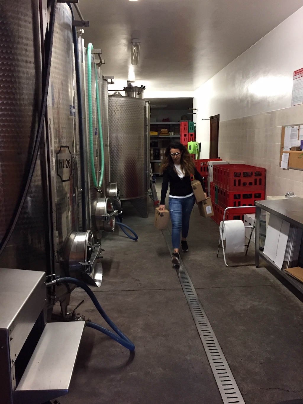 In het verleden kwamen we aanzetten met een damigiana, een mandfles van 55 liter, om daarna thuis te bottelen, maar nu maken we gebruik van het bag-in-box-systeem: kartonnen van vijf liter, die in de koelkast passen en met een handzaam kraantje eraan. Minder bucolisch, maar wel zo handig. Proost!