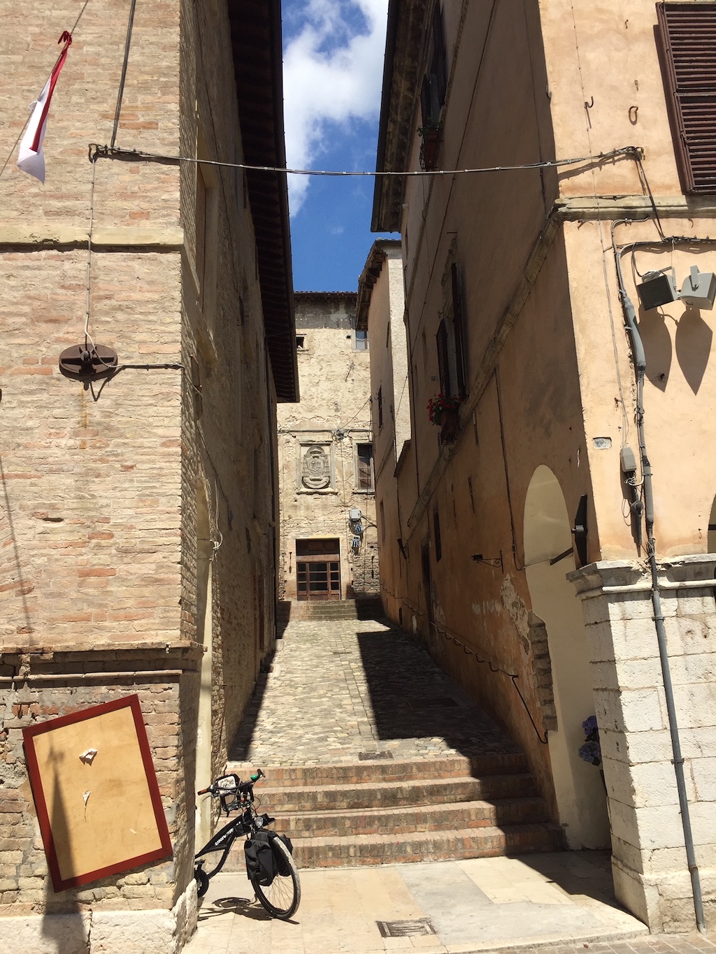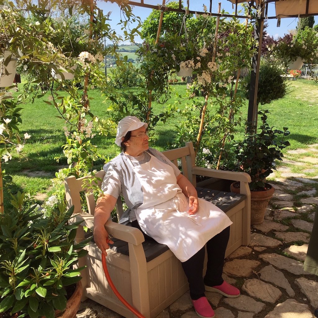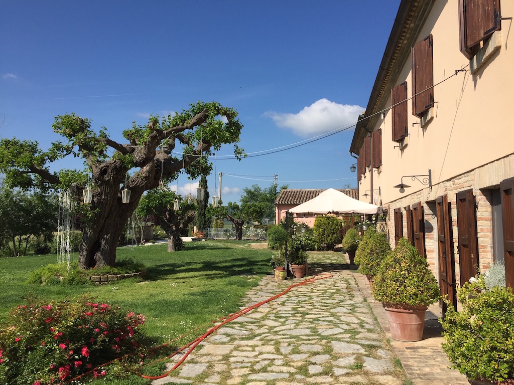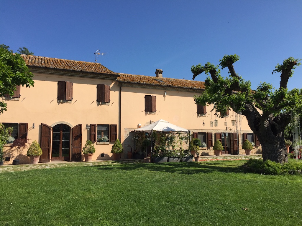 Maar ons doel was het dorp Cartoceto, waar we overnachtten in een landelijk agriturismo, dat zijn naam ontleent aan een paar fikse moerbeibomen, de Locanda del Gelso. Uitbaatster Signora Rosaria, die in de zomer ook vaak Nederlandse klanten heeft uit het nabije Fano aan de Adriatische kust, zette ons de locale passatelli voor. Korte dikke verse spaghetti gemaakt van een mengsel van meel en Parmezaanse kaas, met eekhoorntjesbrood en tomaat, gevolgd door een stevige grillschotel met een voorproefje van de wijn die we de volgende ochtend gingen kopen.