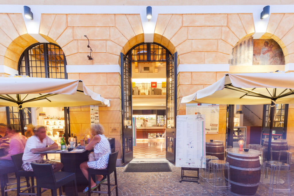 Zéker bij Guerrieri Rizzardi net voorbij de oude dorpspoort. Hier kun je heerlijk zitten in de rustige binnentuin waar het voelt alsof je op een chic landgoed bent, maar ook binnen is het gezellig. Zeker het bezoekje waard voor jouw dagelijkse Aperol Spritz.
