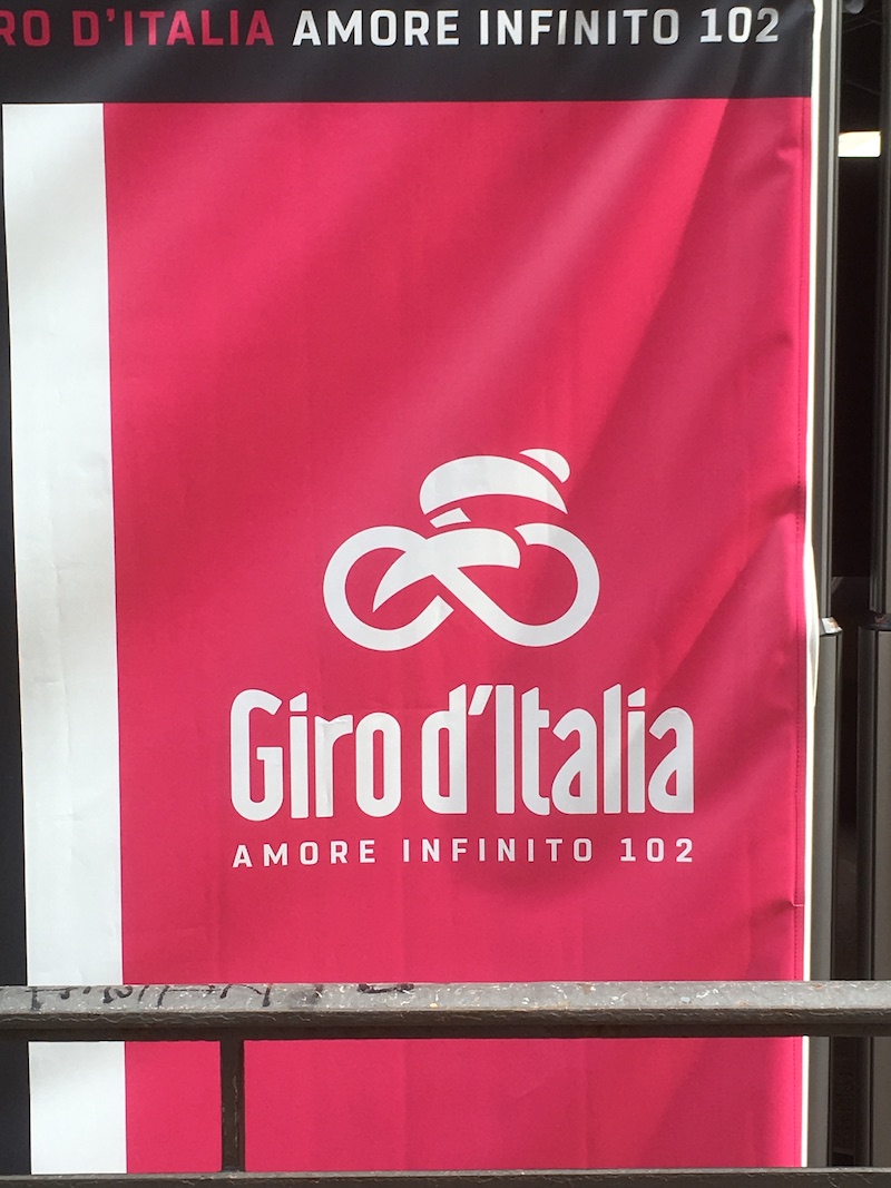Terwijl recht onder ons – over precies twaalf uur – de belangrijkste wielerronde van Italië begint. Vanaf morgen is de (wieler)wereld drie weken lang in de ban van de roze trui, steile bergetappes en ‘de trofee zonder einde’. De dame voor ons in het vliegtuig – dat langzaam de landingsbaan van het Bolognese vliegveld Guglielmo Marconi nadert – heeft dit duidelijk gemist. Hopelijk zijn de wegafsluitingen rondom het parcours haar gunstig gezind…
