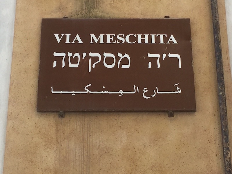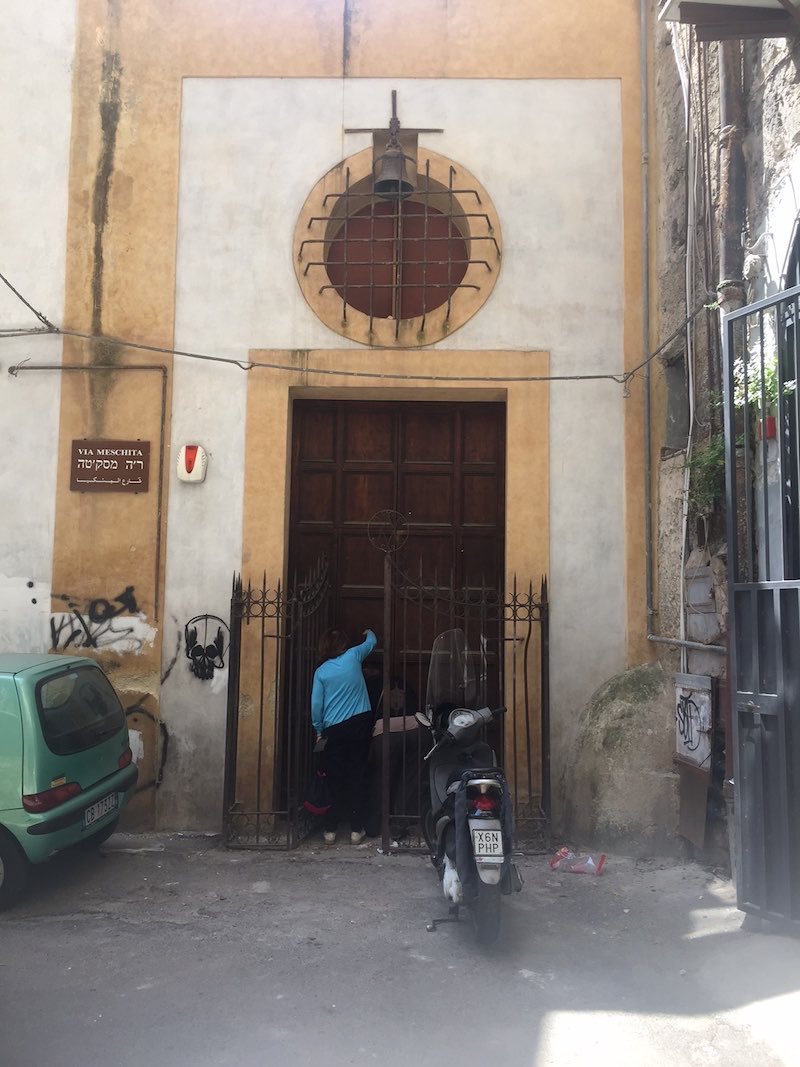 Op nummer 58 lag ooit de toegang tot de Grote Synagoge. Die heeft in de 16e eeuw plaats moeten maken voor de kerk van San Nicolò da Tolentino, maar de toegangspoort, de Arco della Meschita (het Arabische woord voor zowel synagoge als kerk) staat er nog. Pal ertegenover, aan de Vicolo (steeg) della Meschita, ligt een kleine kapel, het Oratorio della Madonna delle Grazie, ook wel bekend als Oratorio del Sabbato, ofwel sjabbat. Het is te danken aan twee ondernemende joodse dames, Evelyne Aouate en Miriam Ancona, dat hier binnenkort weer een synagoge komt. Dat kan dankzij de steun van de aartsbisschop van Palermo, Corrado Lorefice, die het in onbruik geraakte oratorium aan de joodse gemeenschap heeft geschonken.