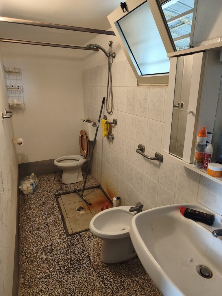 En het water dan? Dat zou als het goed is met een waterpomp uit de grond gepompt kunnen worden. Maar helaas, wij hadden een alleen een cisternino. Dat is een soort put, een reservoir dat gevuld wordt met water uit de grond. Met een pomp wordt het dan de waterleidingen in gepompt. Voor een vakantiehuis is dat prima. Maar voor continue bewoning is dat niet afdoende, hoorden we van de elektriciën. Bij een droge zomer kan hij zomaar droog komen te staan en kun je je wc niet doorspoelen.