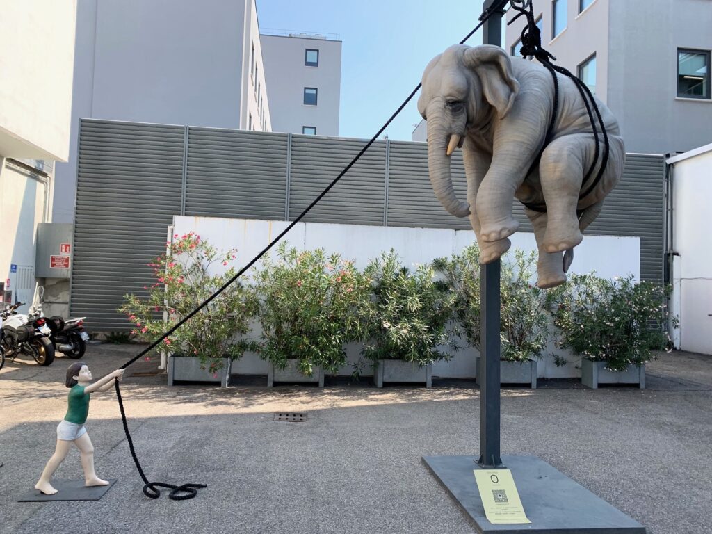 Maar het is wat minder uitbundig dan in voorgaande jaren. Straten en pleinen die toen vol stonden met stands en objecten, zijn nu vrijwel leeg en zonder veel verrassende en bizarre objecten, als je de hangende olifant in de Via Cortona, weer terug als designstraat bij uitstek, en de suikermuur in Palazzo Litta niet meerekent.