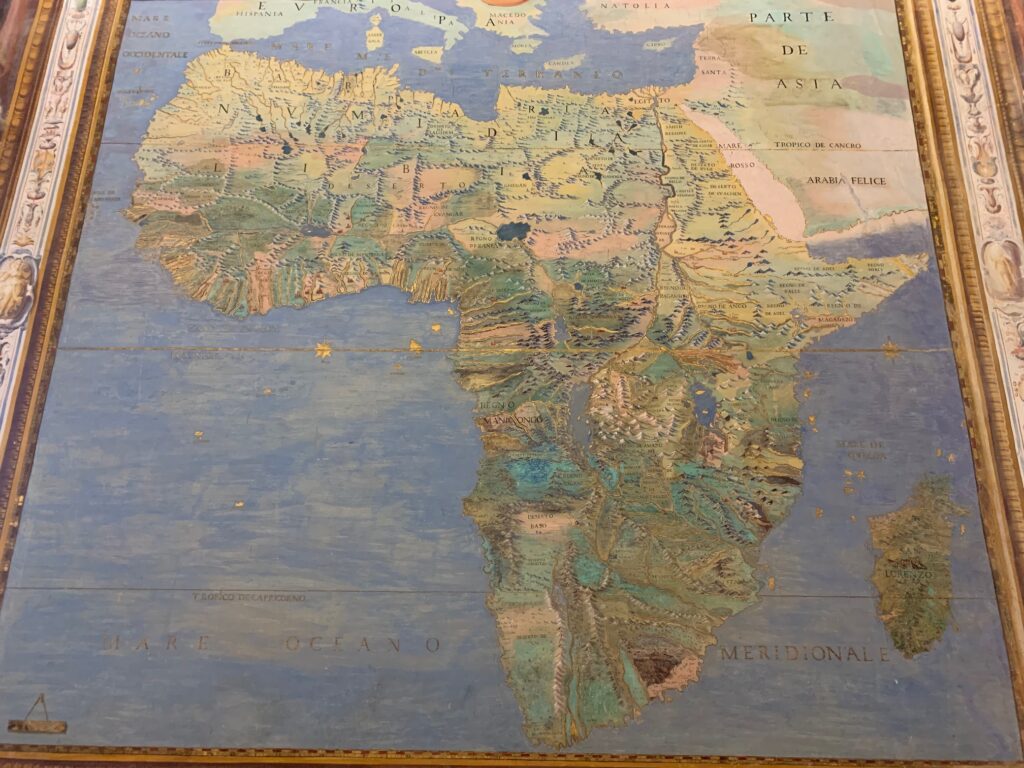 Met een schitterende kaart van de wereld zoals die bekend was in 1571: nog zonder Australië maar met een gefantaseerd helder groen Zuidland. Andere zalen en corridors zijn gewijd aan de (toenmalige) recente geschiedenis en uiteraard ook aan de glorie van de Farneses zelf.