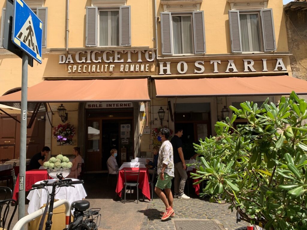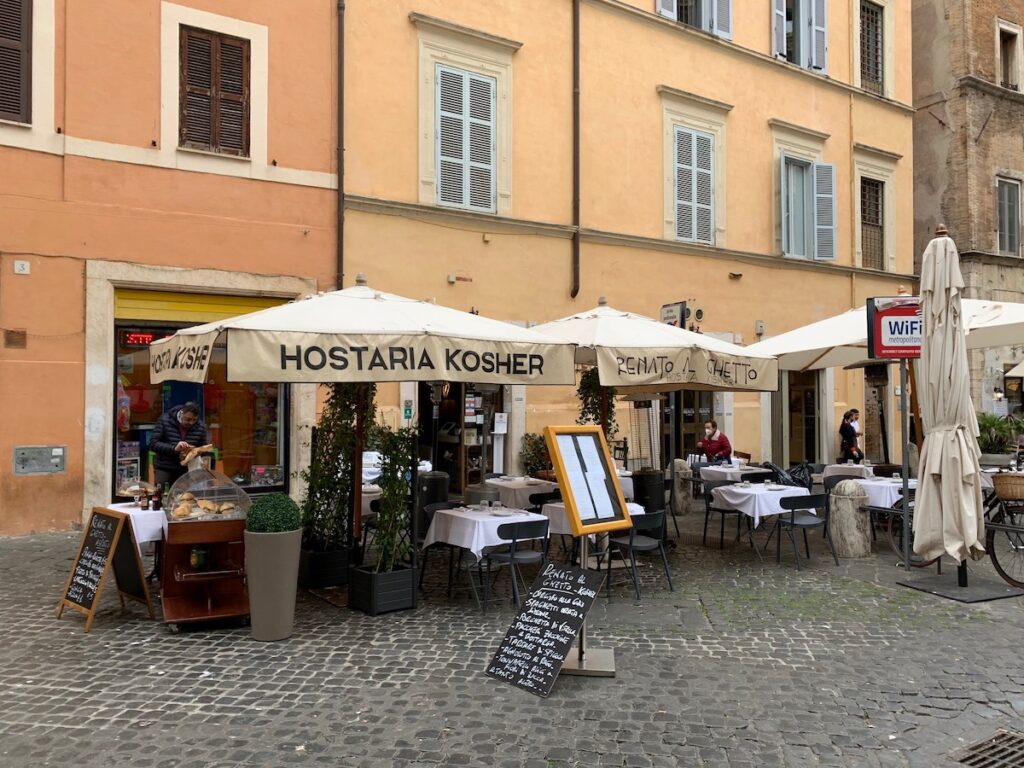 Terug op de hoofdstraat kom je terecht in een gastronomisch Jeruzalem. Nog niet zo lang geleden had je in Rome twee vermaarde joodse restaurants: het populaire Giggetto al Portico d’Ottavia en het meer luxe Piperno even verderop aan Via Monte de’ Cenci. Beide serveren nog altijd lokale joodse specialiteiten als carciofi alla giudia, dubbel gefrituurde artisjokken, en aliciotti all’indivia, een hartige taart gevuld met ansjovis en andijvie, maar daarnaast ook klassieke niet koosjere Romeinse gerechten.