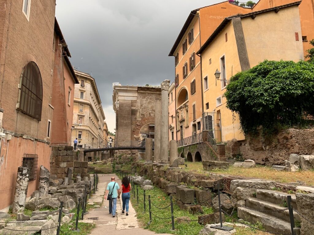 Naast het Casina heb je een prachtige doorkijk naar het antieke Theater van Marcellus.