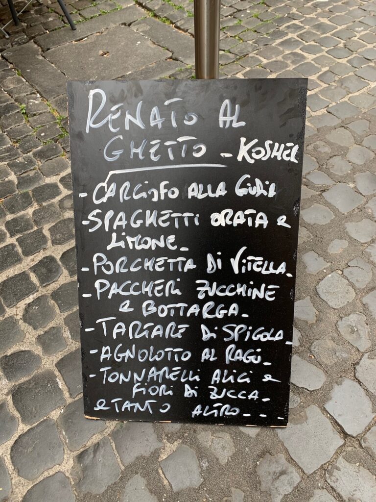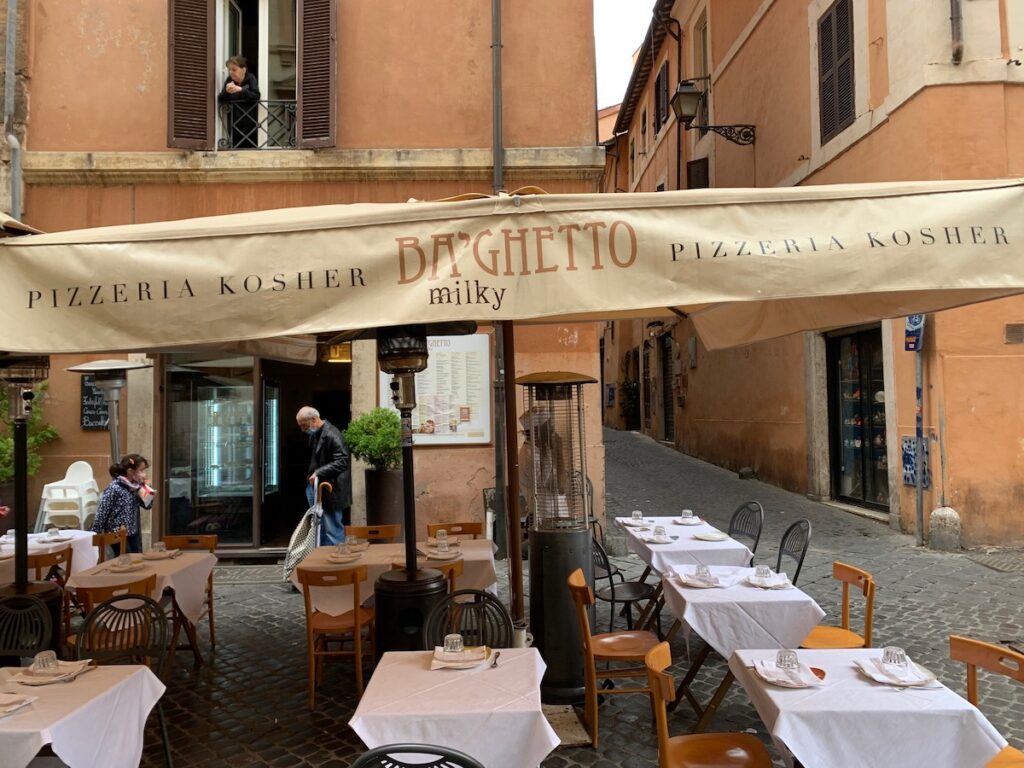 Zo serveert Ba’ Ghetto couscous, falafel en burik, maar ook koosjere pizza en bucatini all’amatriciana met droog rundvlees in plaats van spek. Wie zich aan strikte spijswetten houdt, kan terecht bij Ba’ Ghetto Milky, dat geen vlees, schaal- en schelpdieren op de kaart heeft, maar wel vis, koosjere kaas en onder rabbinaal toezicht vervaardigde wijn.