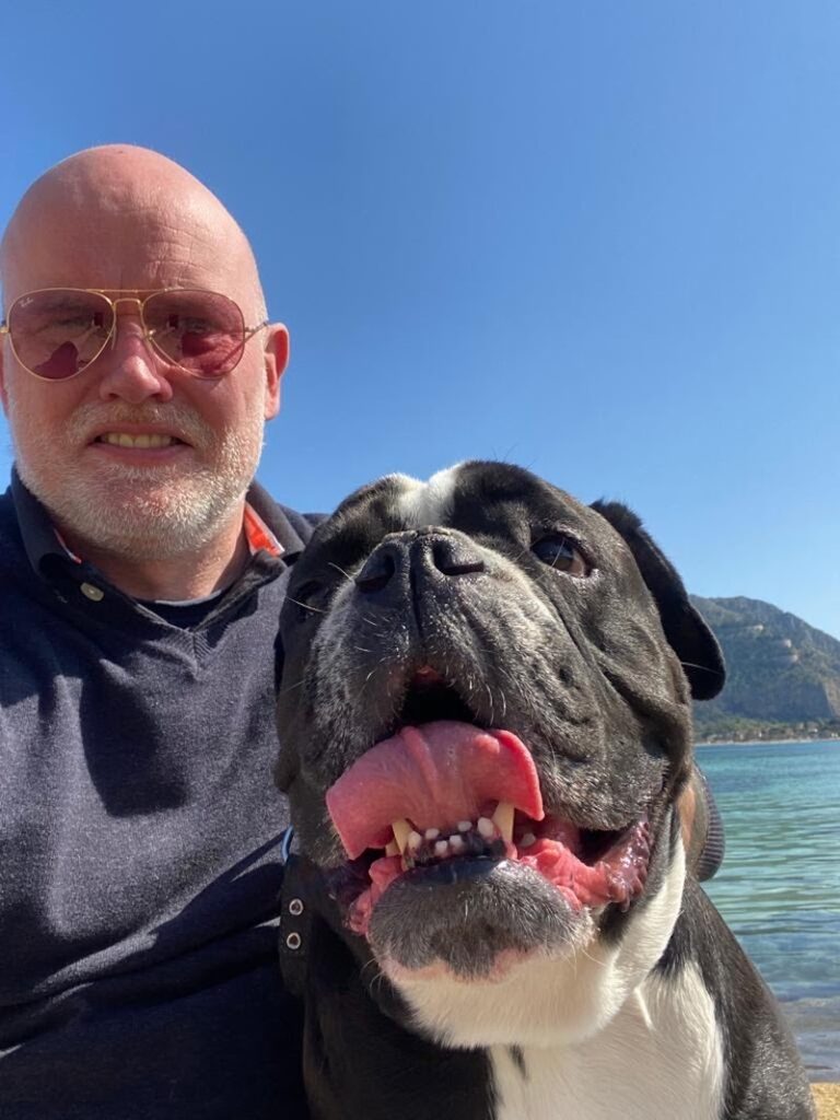 Zijn eerste man Valter was een Italiaan die hij in Amsterdam ontmoette. ‘Zo heb ik Italiaans leren spreken. Thuis was ItNeGlish de voertaal, een allegaartje van Italiaans, Nederlands en Engels. Alleen met de honden heb ik altijd Italiaans gesproken.’ Hij krabbelt zijn buldog Shiva even achter de oren. Ze hadden een goedlopend Italiaans restaurant in Amsterdam-centrum tot de bankencrisis roet in het eten gooide. ‘Toen kon zelfs de positieve recensie van Johannes van Dam ons niet drijvende houden.’