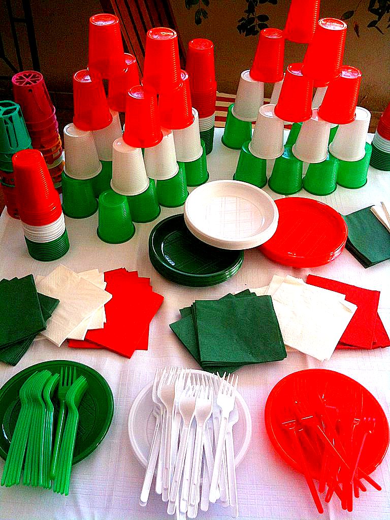 Vergeet ook de Italiaanse vlaggetjes en ballonnen in 3 kleuren niet. Misschien wel het complete serviesgoed. Alles wat je nodig hebt kun je makkelijk kopen via bol.
