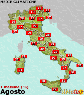 De gemiddelde temperaturen in Italië in augustus zijn: