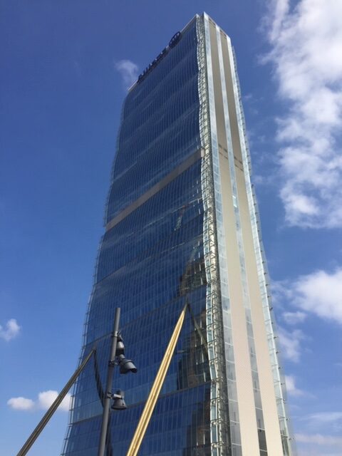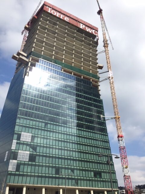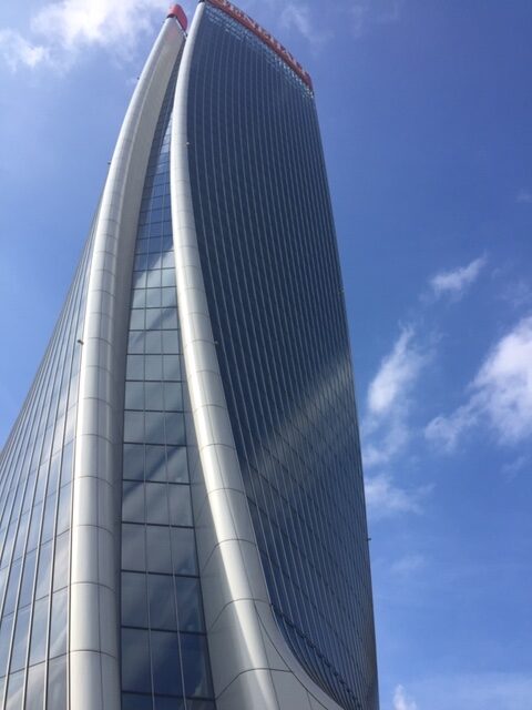 Je komt via de ‘paarse lijn’ van de metro op het station dat treffend Tre Torri heet. De wijk wordt namelijk gedomineerd door drie enorme kantoortorens – tot 231 meter hoog – ontworpen door architecten met al even grote namen: Zara Hadid, Daniel Libeskind en Arata Isozaki.
