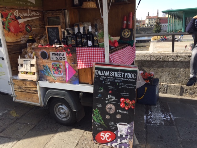 Naast de Darsena voert de Corso di Porta Ticenese van de gelijknamige stadspoort naar het Domplein. Wat mij betreft is dit een van de interessantste straten van de stad, betrekkelijk smal, geflankeerd door eetgelegenheden en alle soorten winkeltjes en alleen toegankelijk voor voetgangers, de tram en een enkele fietser.