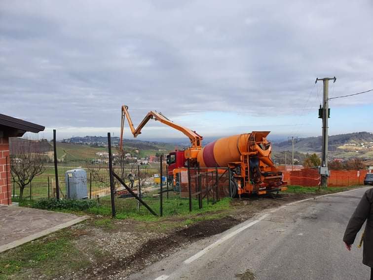 Tenslotte (voor deze keer) kwamen er opnieuw een betonmolen en een pompwagen om de muren te storten. Tot Roberto’s grote ergernis reed de chauffeur van de pompwagen tegen zijn (Roberto’s) advies het drassige terrein op en zakte er zodanig in weg dat het hem na gedane arbeid niet meer lukte eruit te komen.