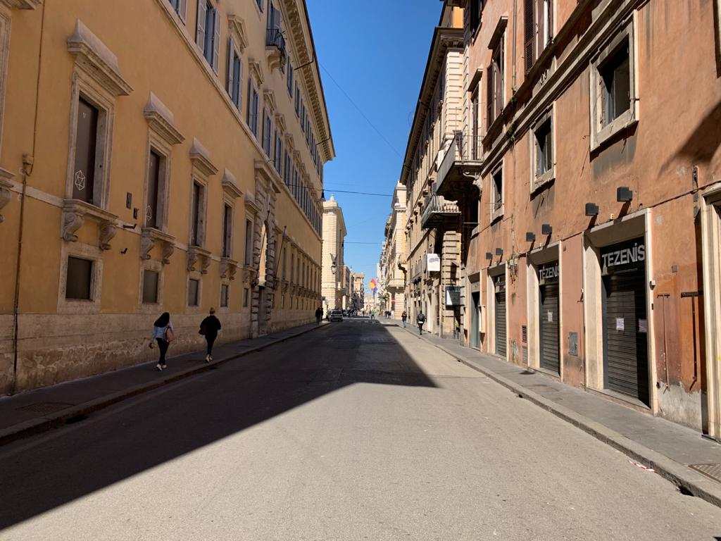 Gisteren konden we nog kuieren, met minstens een meter afstand van elkaar, door de vrijwel lege straten van Rome. En een aperitief gebruiken op het spookachtig mooie, verlaten Piazza della Rotonda, het plein voor het Pantheon. Maar ook dat is nu voorbij.