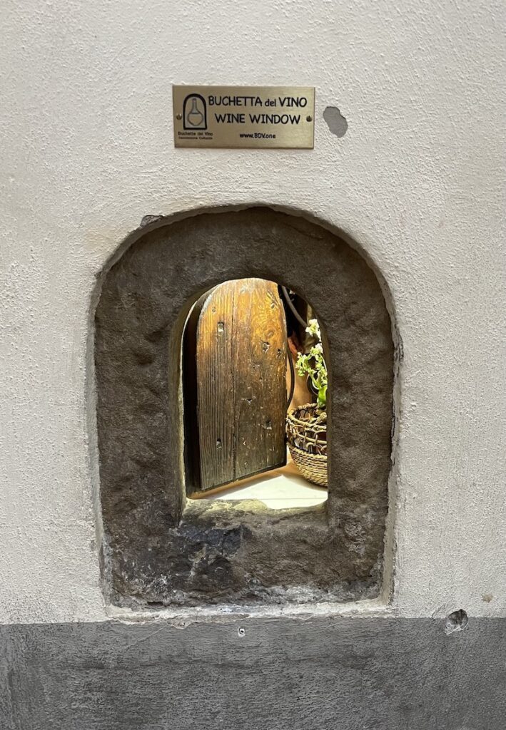Een fles wijn wordt er niet meer verkocht, maar je kunt wel een glas wijn kopen. Mocht je wat mensen op straat zien staan met een glaasje wijn, dan is daar zeker zo’n buchetta del vino in de buurt.