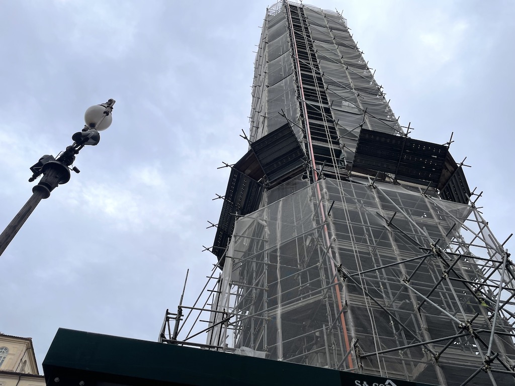 De Zuil van Marcus Aurelius aan het Piazza Colonna in Rome wordt met lasers schoongemaakt (foto's: Aart Heering)