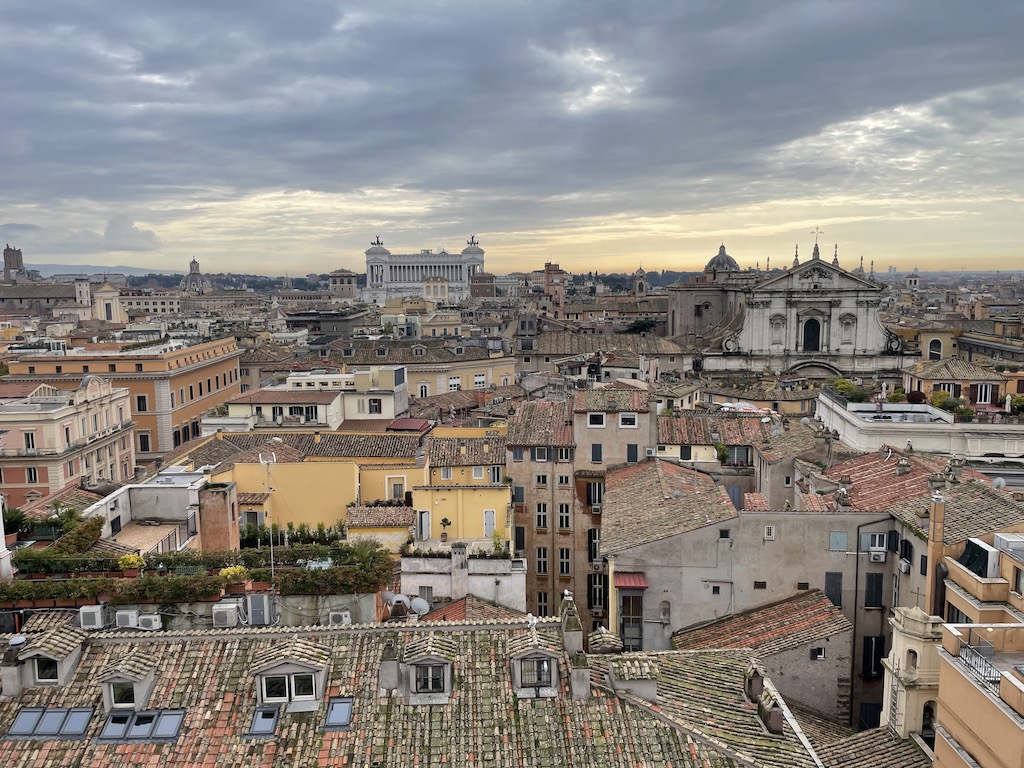 Zicht op Rome vanaf de top van de zuil (met rechtsachter de koepel van de Sint Pieter)