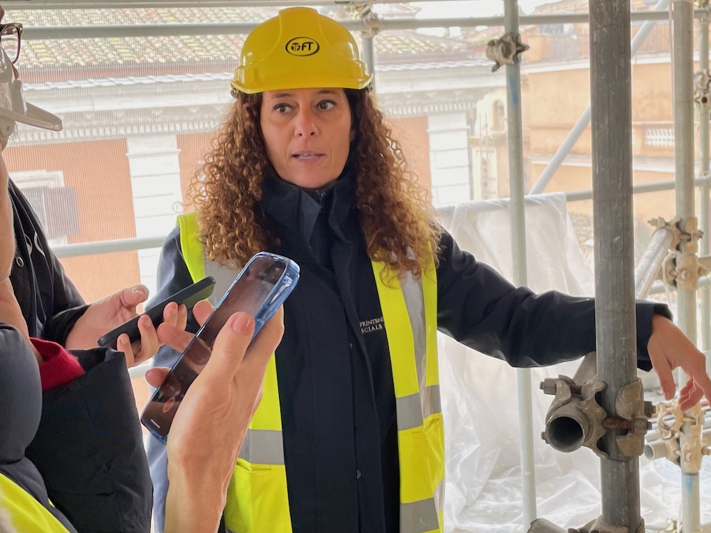 Hier zie je hoe de zuil millimeter voor millimeter wordt ‘schoongestraald’ (video: Sopraintendenza Speciale di Roma)