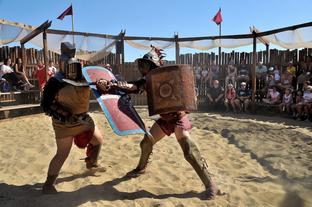 In de Arena kun je gladiatoren kun je niet alleen aan het werk zien, maar je kunt zelf ook een dag lang tot gladiator worden opgeleid. Verdere attracties zijn onder meer een kinderboerderij, ritjes op pony’s of kamelen, boogschieten, wagenrennen, een valkeniersshow en een botanische tocht door de mediterrane vegetatie.