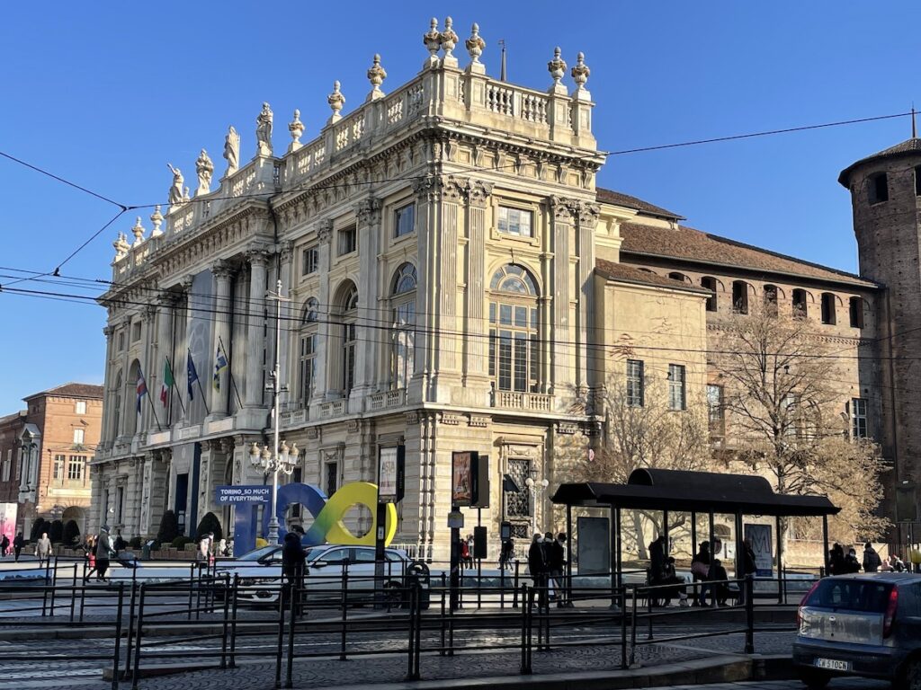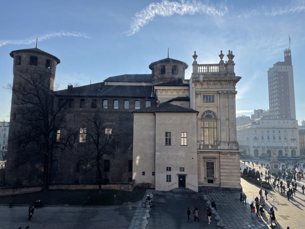 Op het Piazza Castello ligt het Palazzo Madame met aan de voorkant een barokke façade, aan de achterkant een middeleeuwse burcht met 2 torens.