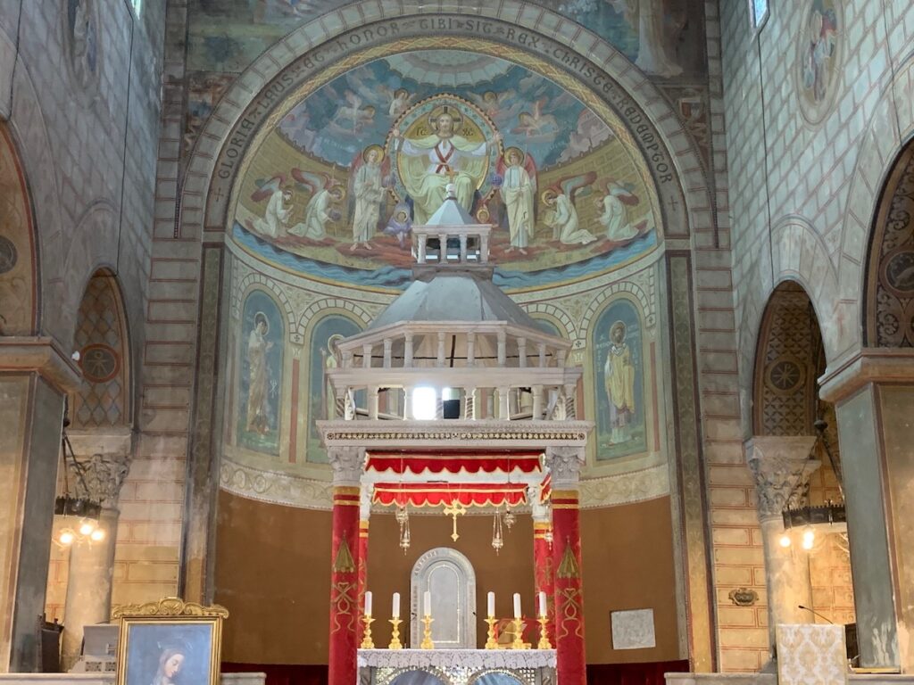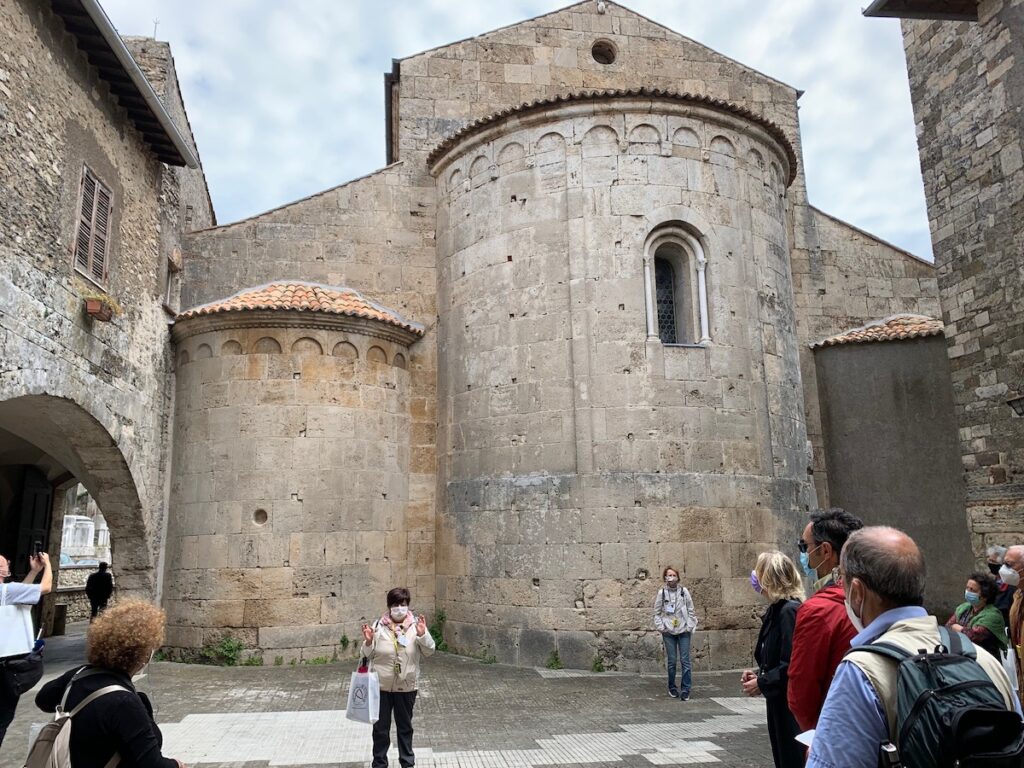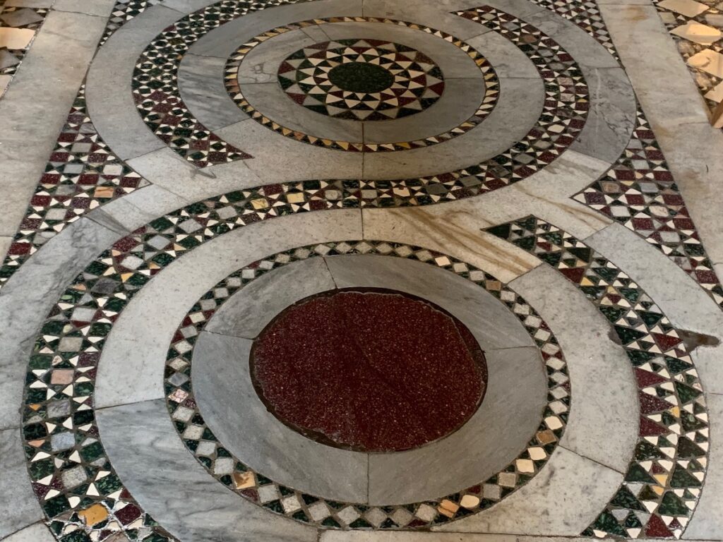 Bovenop het Romeinse bouwwerk staat nu het imposante Vescovado (bisschoppelijk paleis) en er tegenover de Dom, een in 1108 ingewijd soliede Romaans juweeltje met van die fraaie cosmatische vloeren (figuratieve marmermozaïeken), zoals je die ook in veel Romeinse kerken uit die tijd ziet.