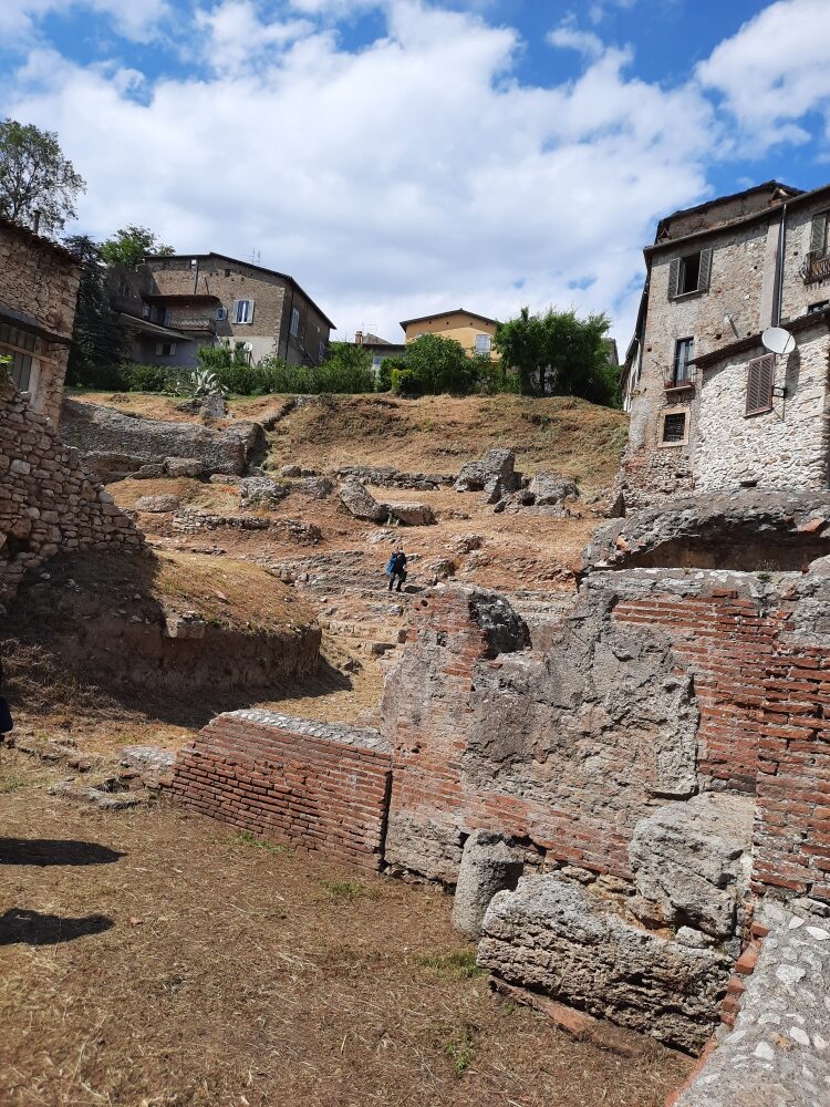Na de lunch (een sober pakket vanwege de pandemie, maar wel genuttigd in de Grangia, de door Cisterciënser monniken in de 13e eeuw aangelegde graanschuur, en de belendende tuin), was het tijd voor de ceremonie in het Romeinse theater, dat toen het onder keizer Trajanus in de 2e eeuw werd aangelegd, plaats bood aan 3.000 toeschouwers, genoeg voor een provinciestad als Ferentinum.