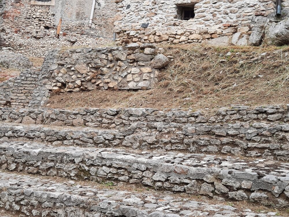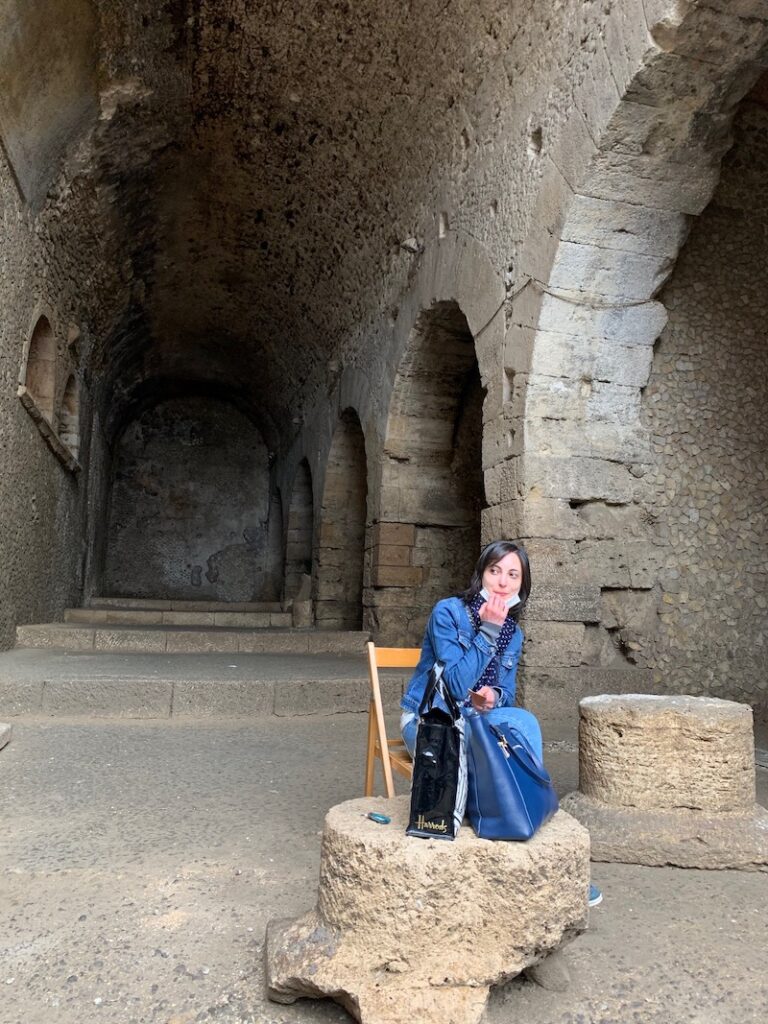 Daarbinnen werden we door burgemeester, wethouder en de landelijke en lokale kopstukken van Archeoclub onthaald met lofzangen op het ‘unieke historische en culturele erfgoed’ waar Ferentino zo trots op kan zijn. Dat gebeurt altijd op dit soort reizen, maar ditmaal werden de toespraakjes nog verrijkt met indringend gekoer van bronstige duiven voor wie het antieke bouwsel een passende til was.