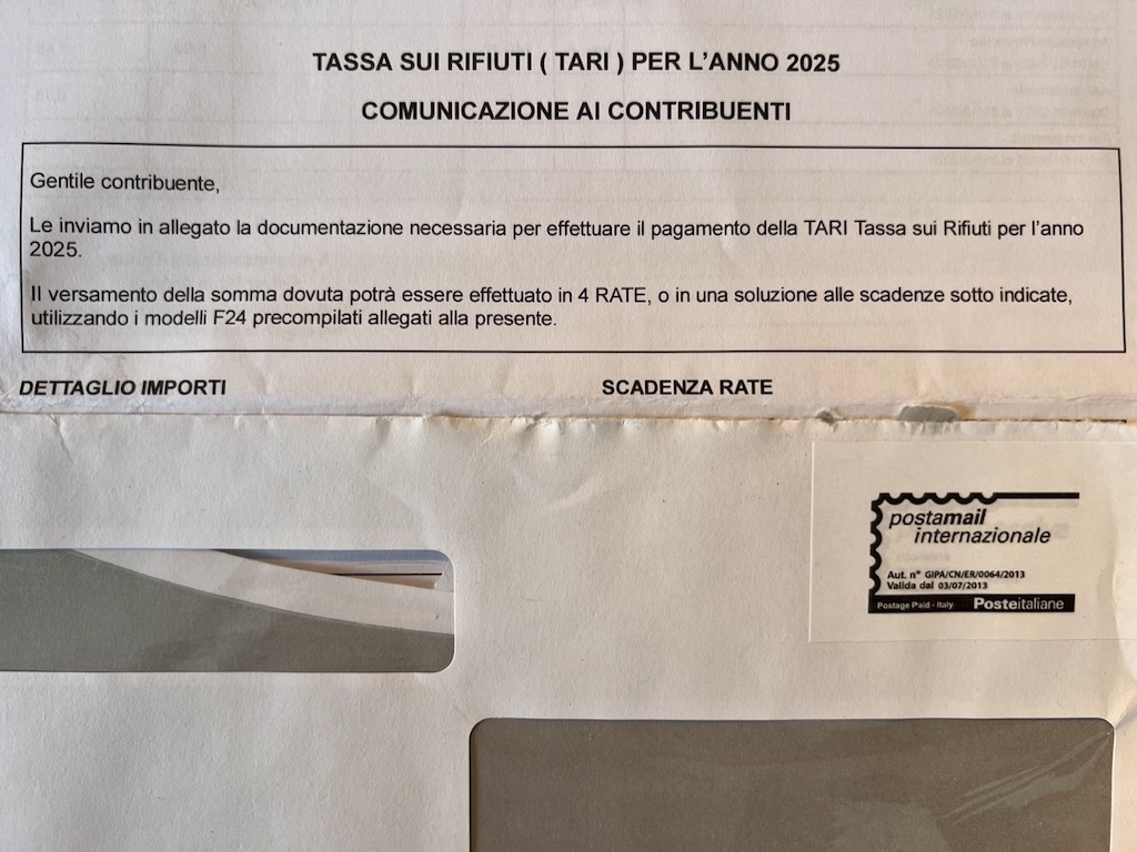 Hoewel we dus vooruitgang boeken op pakketjes-gebied, wachten we na een jaar nog steeds op de factuur van de Tassa sui Rifiuti (TARI), de jaarlijkse gemeentelijke afvalstoffenheffing. Ons was verteld dat deze naar ons adres in Nederland zou worden gestuurd.